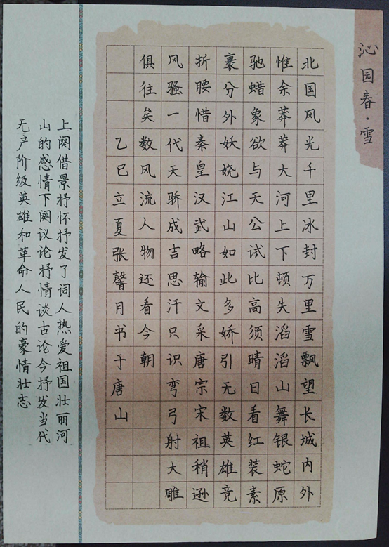 ②文化浸润:以古诗词为范本,在笔墨间理解汉字结构之美与诗词意境之韵,深化对传统文化的认知;能引导学生树立正确的价值观,增强文化自信,让中华优秀传统文化在新时代熠熠生辉。