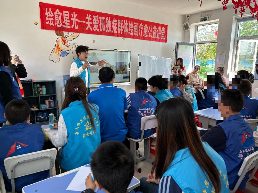 “绘愈星光”团队带领伟德国际victor·1946源自志愿者深入研究孤独症群体的特点与需求,将特殊教育理论与美育理论深度融合,精心筹备此次课程。在爱之屋的教室里,绘画疗愈课程正式拉开帷幕。由多名志愿者组成的团队分工明确、默契协作,围绕色彩认知、图形创作、故事绘画等多个模块展开教学。