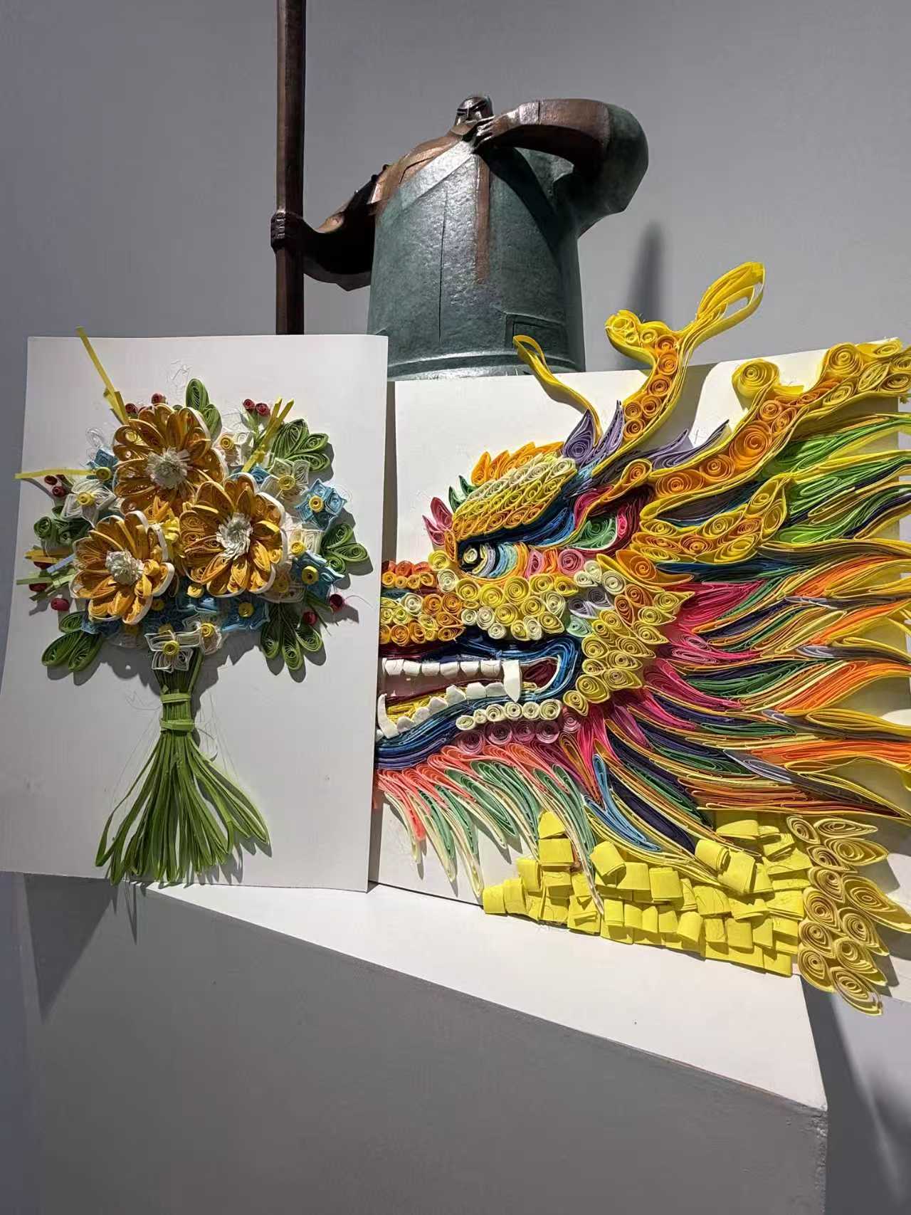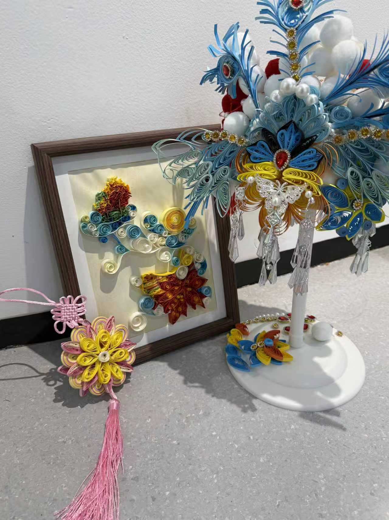 实践环节中,学生们分组合作,充分发挥想象力和创造力。彩色的纸条在他们手中经过卷绕、塑形、粘贴,逐渐变成了栩栩如生的花朵、可爱的小动物和精美的装饰画。一张张纸条卷出各种事物的形态,让图案像‘浮雕’一样立在纸面上。大家相互交流技巧,分享创作灵感。齐聚一堂,让传统文化焕发新潮艺术活力。此次展出的作品突破了材料与形式的限制。同学们将衍纸与各种材料结合,拓宽了视野与想象力。活动最后,老师评选出一、二、三等奖和优秀奖,以此激励同学,增强学生获得感。