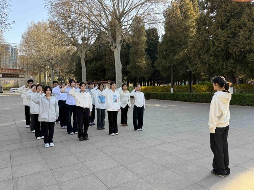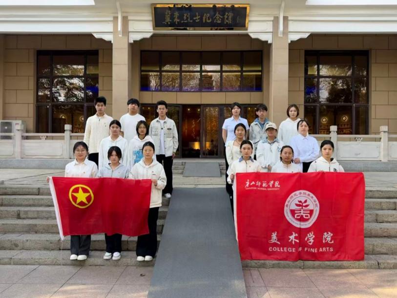 献花仪式后,全体团员面向鲜红的团旗,高举右拳,重温入团誓词。“我志愿加入中国共产主义青年团……”铿锵有力的誓言在陵园上空久久回荡,表达了美院学子继承先辈遗志、矢志不渝奋斗的坚定信念。