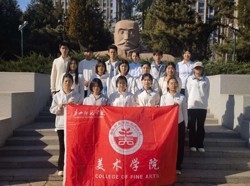 活动首站,大家来到唐山抗震纪念碑前。这座丰碑不仅见证了唐山人民“公而忘私、患难与共、百折不挠、勇往直前”的抗震精神,更是一段不可磨灭的历史记忆。在巍峨的纪念碑下,全体团员肃立默哀,瞻仰碑文,重温那段众志成城的峥嵘岁月。大家深刻感悟到,作为新时代青年,要继承和发扬抗震精神,将这份坚韧不拔的意志融入专业学习和艺术创作中去。